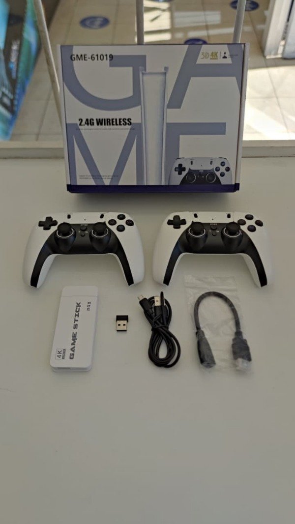 GAME STICK es una consola de video juegos multiplataforma con capacidad para más de 7.000 juegos de 9 consolas diferentes, entre ellas las más populares como PlayStation, Nintendo y Sega, haciendote revivir la magia de los video juegos retro desde el año 1980 hasta el 2003.